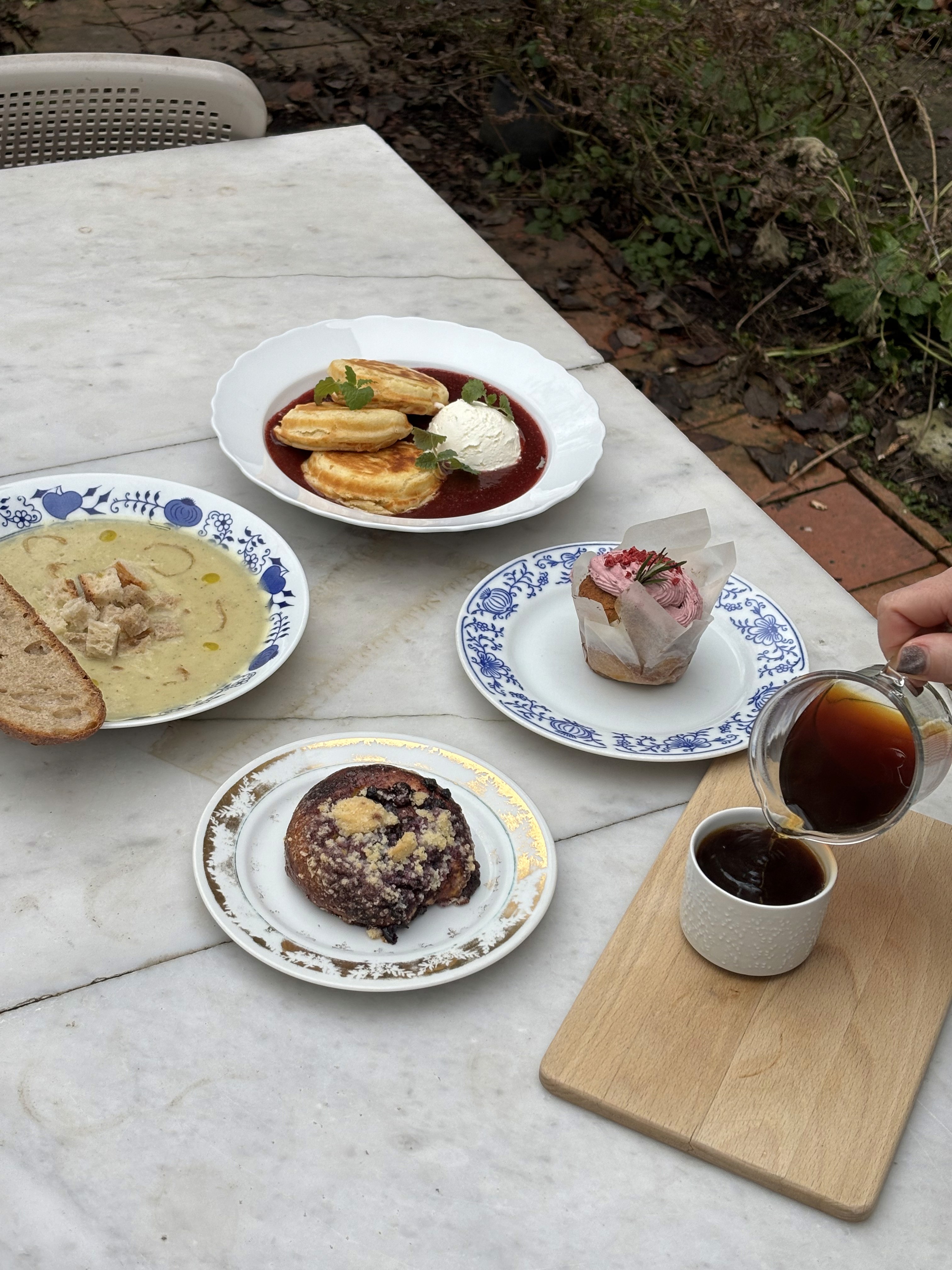 Sure, we make a mean flat white, but we’re also your go-to spot for slow mornings, deep talks, and afternoons that stretch just a little longer than planned. Tucked away in the heart of Prague, our backyard garden is a hidden gem, lush greenery, blooming flowers, and the perfect spot to sip your coffee in peace.